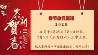 中国本社は2月12日から2月23日の間お休みをいただきます。日本営業は通常通り営業致します。見積りのご依頼、製作可否などのご相談も通常通り承ります。